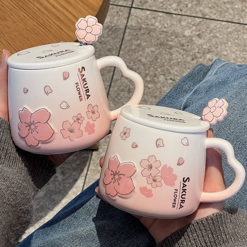 Kawaii Cherry Blossom Sakura Ceramic Cup (400ml)